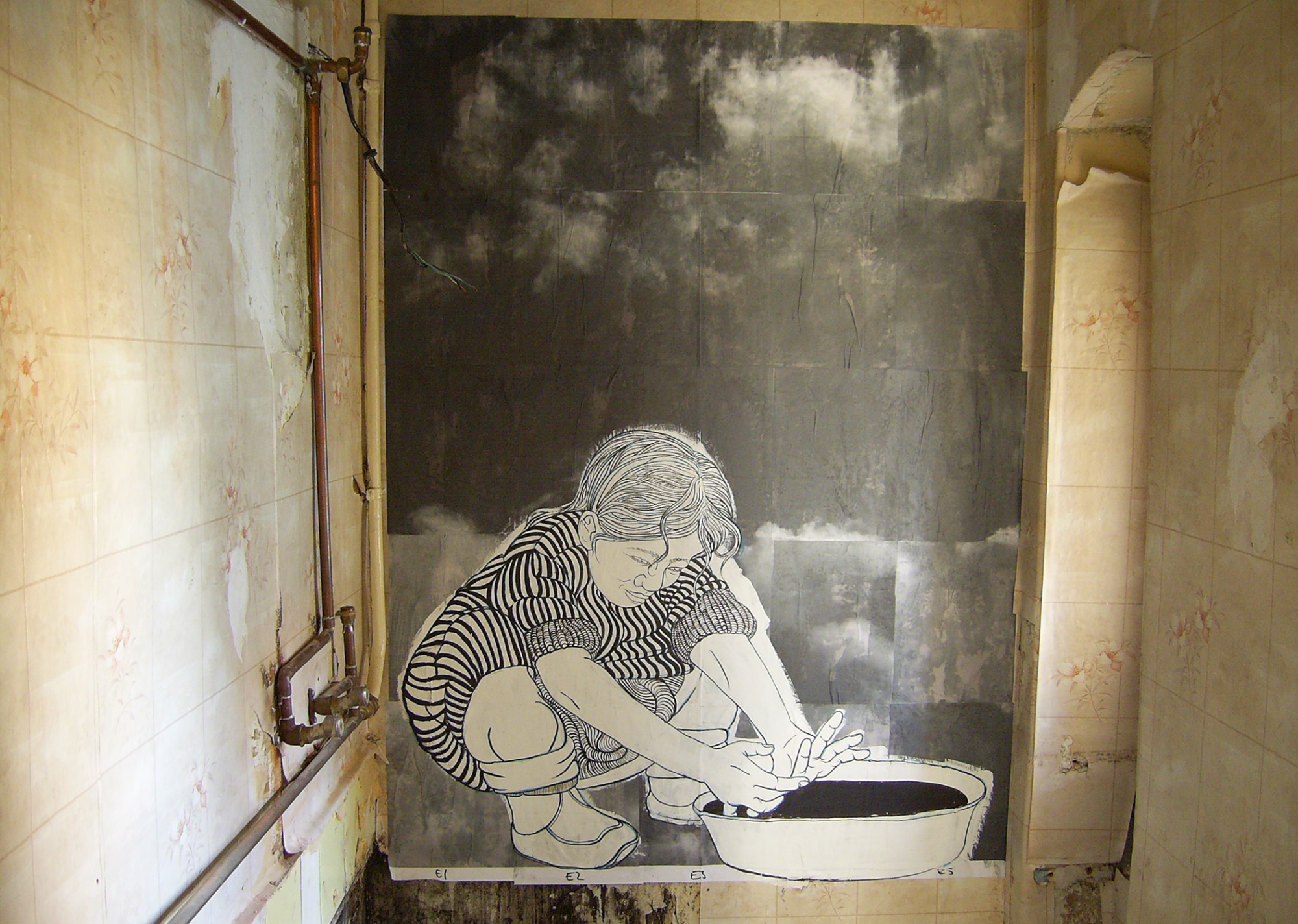 Wandarbeit auf Fotokopie, Danziger Strasse Berlin, 2003